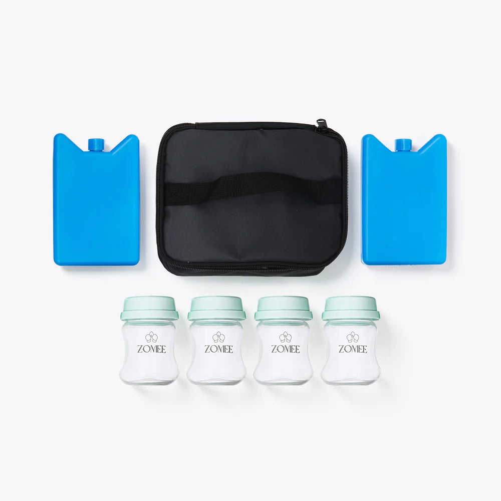 Zomee Cooler Bag With 4 Zomee Wide Neck Bottles, 140 mL